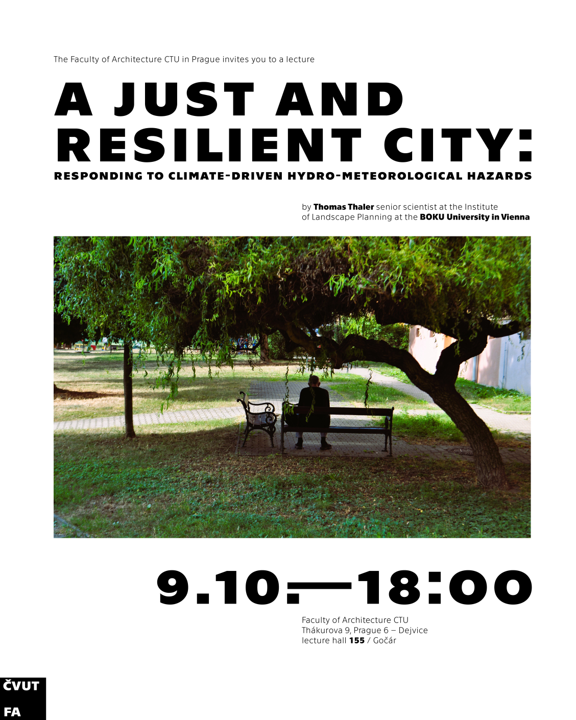 Po přednášce světově uznávaného odborníka na spravedlivou adaptaci na změnu klimatu ve městech Thomase Thalera (BOKU Vienna, IIASA) proběhne kolokvium, které nabídne prostor pro otevřenou diskusi o možnostech posílení městské odolnosti bez prohlubování sociálních nerovností, rizicích tzv. zelené gentrifikace a o tom, jak skloubit adaptační strategie s principy spravedlnosti.