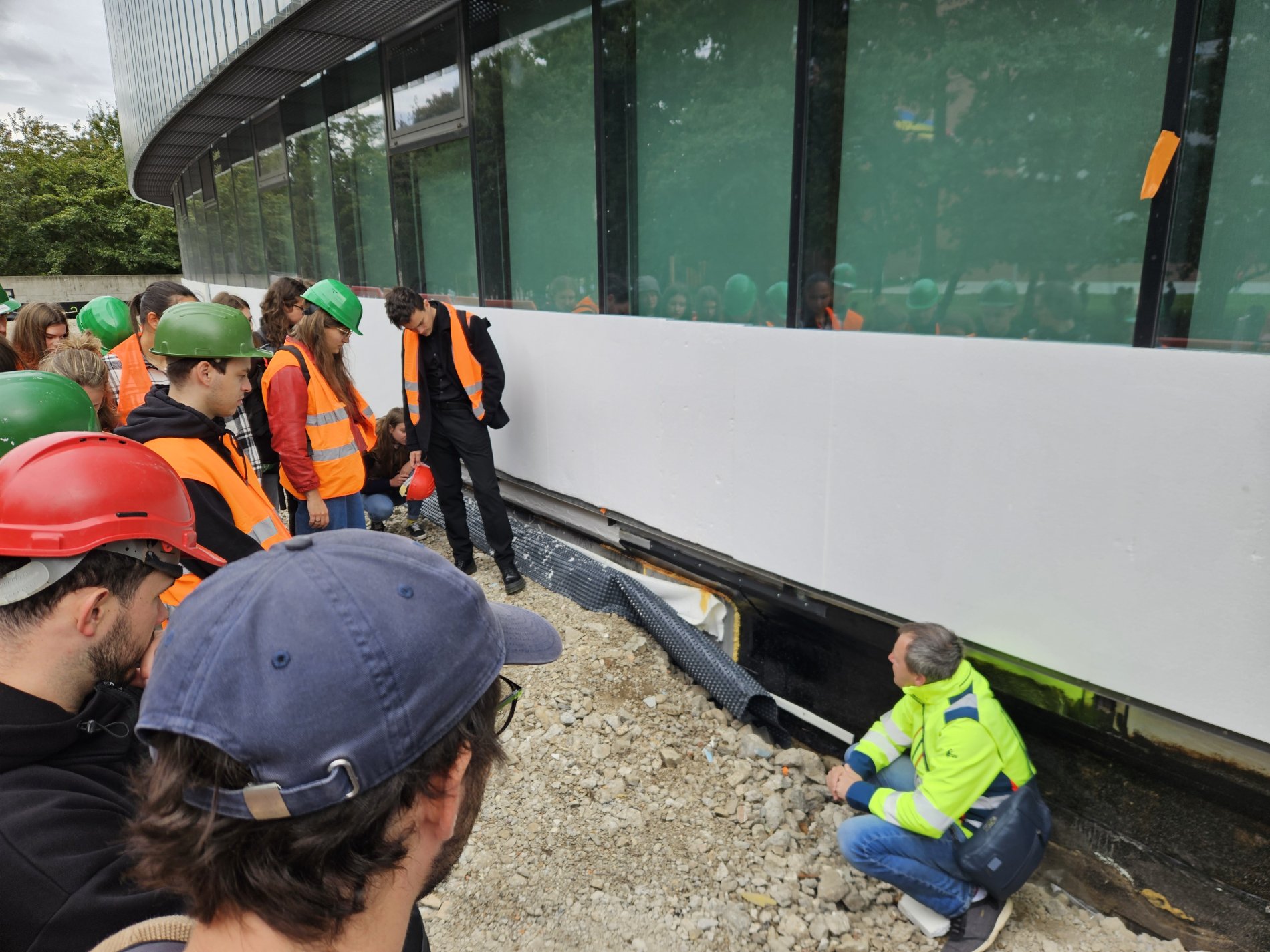 Exkurze studentům umožnila nahlédnout do technologického postupu sanace, seznámit se s použitými materiály a detaily provedení a diskutovat s odborníky přímo na stavbě.
