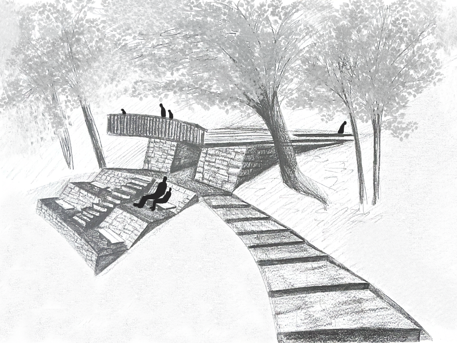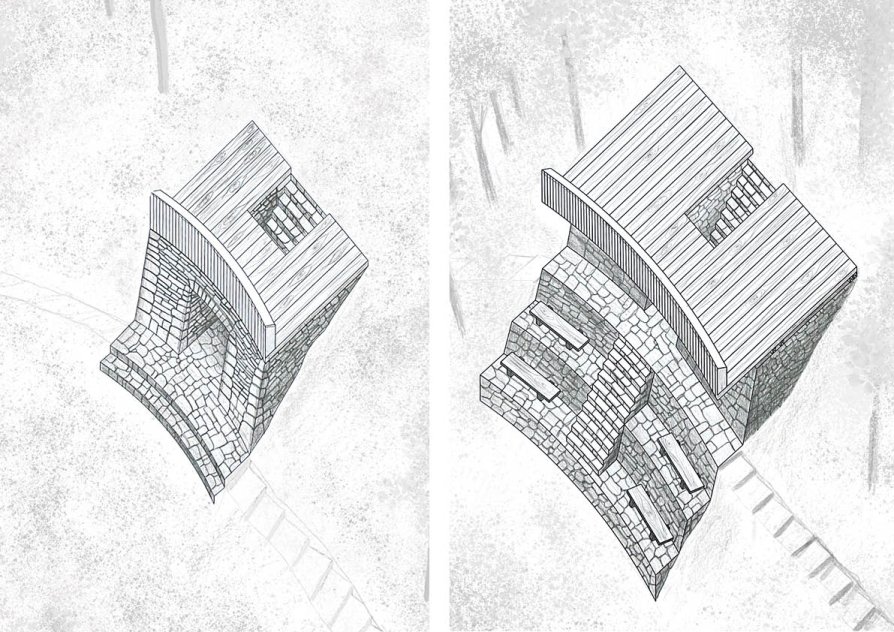 Tento projekt zve návštěvníky, aby zažili historii Zubrnic jak očima, tak příběhem. Když čtete o minulosti obce, současně máte možnost vidět zříceniny mlýnů, které kdysi hrály zásadní roli v její historii. Dvě architektonické intervence jsou navrženy tak, aby upoutaly pozornost a vzbudily zvědavost - povzbudily k objevování okolního lesa. Umístěné podél toku Lučního potoka, struktury se vztahují k dvěma historickým mlýnským lokalitám: č. 23, Fiedelmühle, a č. 40, Hutmühle, které jsou nyní dvěma zříceninami pokrytými vegetací. Okrouhlé uspořádání navrhované intervence odráží specifické křivky v cestě řeky, což pomáhá vyhlídkovým objektům přirozeně se integrovat do krajiny a zároveň nasměrovat pohledy návštěvníků k zříceninám.
