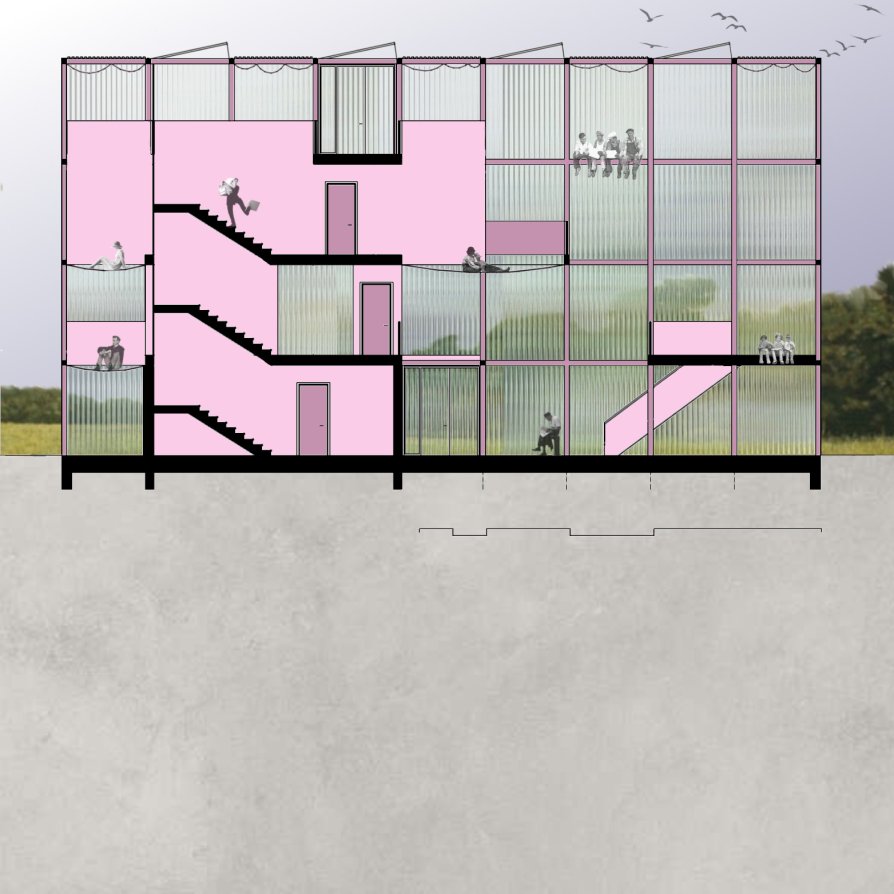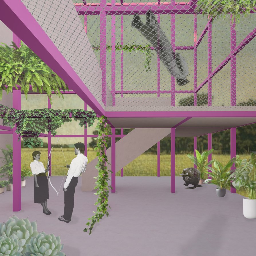 Dům, který přivítá kolemjdoucí příjemným vnitřním klimatem, nehledě na počasí. Průsvitný obal vytváří vzdušný prostor, naplněný světlem a rostlinami, které se pnou po vzhůru po konstrukci. V chladných měsících poskytuje vlídné prostředí, a slouží jako velká zimní zahrada. V horkých dnech lze dům otevřít do okolní přírody. V síti trámů a sloupů vzniká prostor pro pobytové sítě, ze kterých je možno shlédnout na sál a kavárnu. Zázemí pro vědce je propojeno s hlavním prostorem, aniž by došlo k narušení soukromí. Na střeše leží soukromá zahrada a skleník. V okolí, včetně starého parkoviště, vzniká prostředí, kde se lokálové mohou sejít, a zasportovat si, nebo kde si mohou hrát děti z okolní zástavby. Cílem je vytvoření příjemného biotopu jak pro faunu a flóru, tak i pro místní obyvatele.