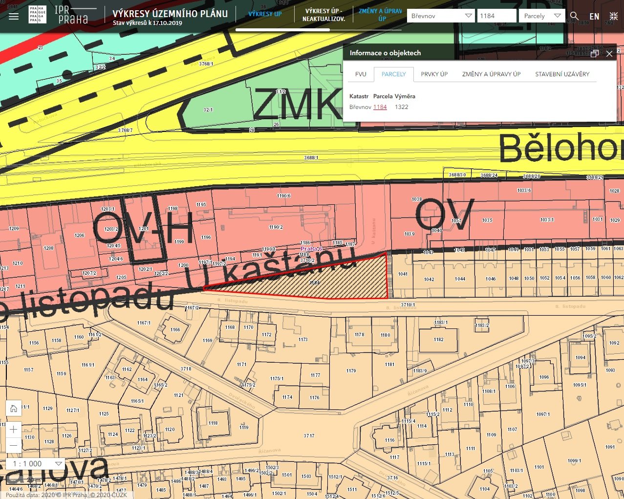 Trojúhelníkový pozemek o rozloze 1 322 m2 v sevření ulic 8. listopadu a U kaštanu je součástí zastavitelného území dle platného ÚP města Prahy. Obtížnost zastavění spočívá v severní orientaci a velké svažitosti terénu. Z hlediska funkčního využití budeme prověřovat umístění mateřské školy.