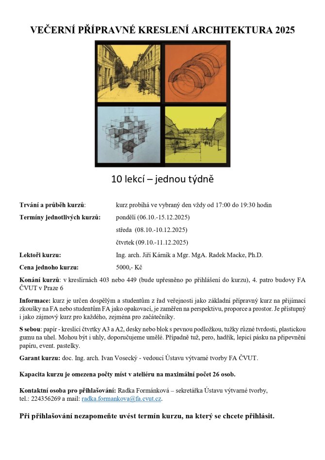 Garant kurzu: doc. Ing. arch. Ivan Vosecký - vedoucí Ústavu výtvarné tvorby FA ČVUT.