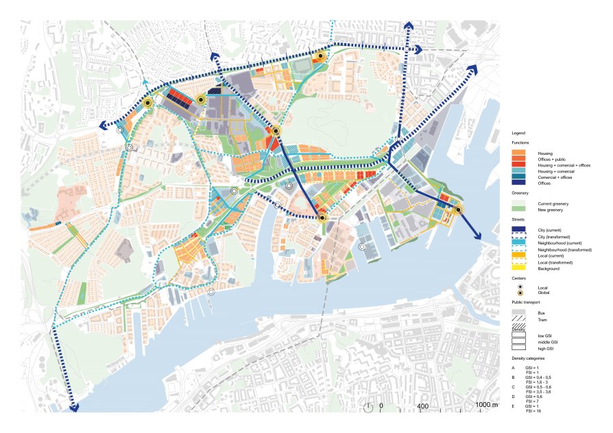 The aim of Woven Together is to enhance Hisingen’s potential for vibrant urban life by promoting mixed-use development that integrates both existing and new buildings. By introducing new tram lines, the plan facilitates stronger connections, encourages pedestrian activity, and supports the emergence of new urban centers on the island. Additionally, it creates opportunities to link green areas, promoting ecological continuity and providing habitats for various species.
