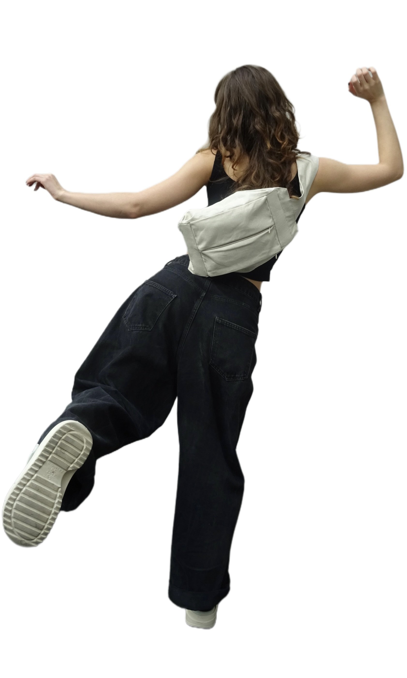 Thanks to the original attachment of the wide strap and variable volume, the bag can be used only partially without losing its shape - it adapts to the current need.